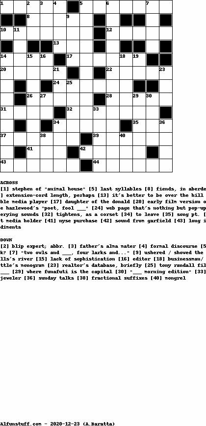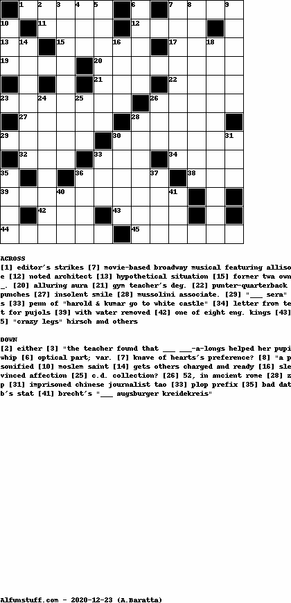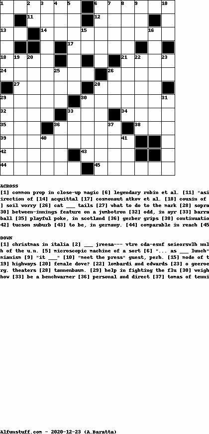 List of Crossword Puzzles with dimension 13x13