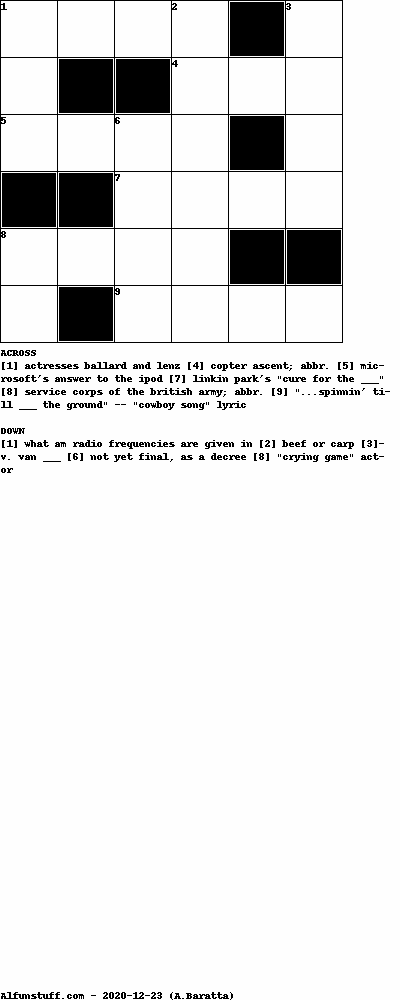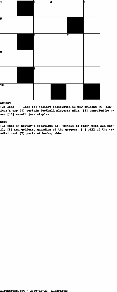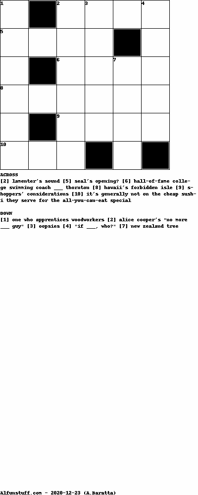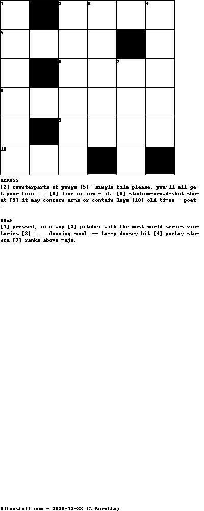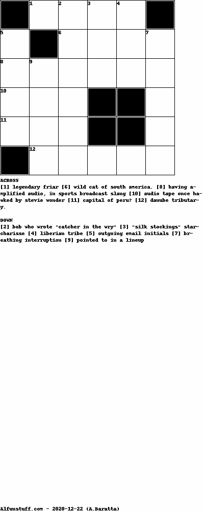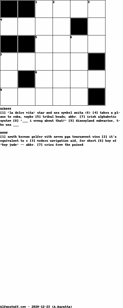 List of Mini Crossword Puzzles with dimension 6x6