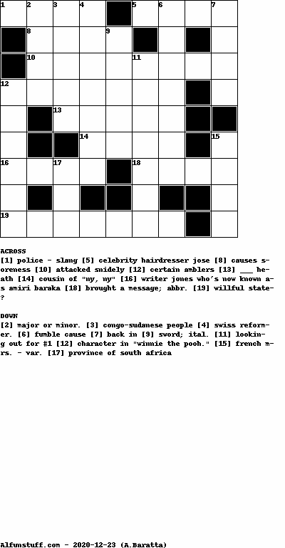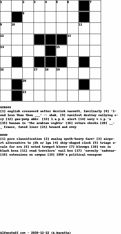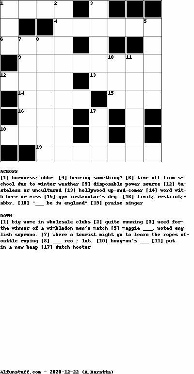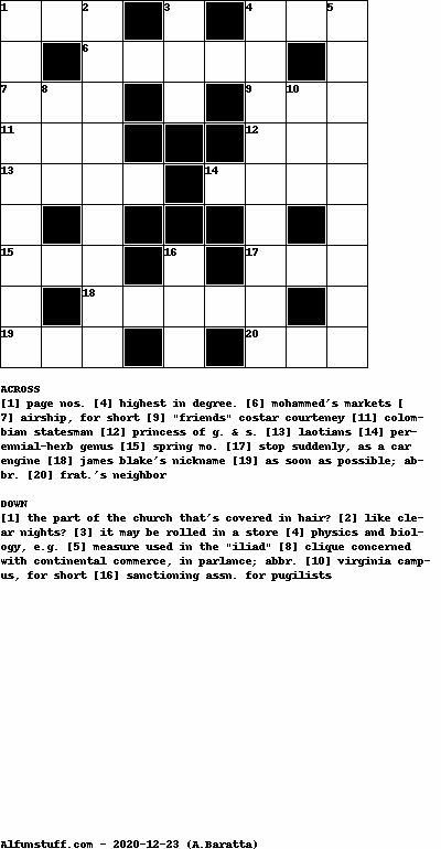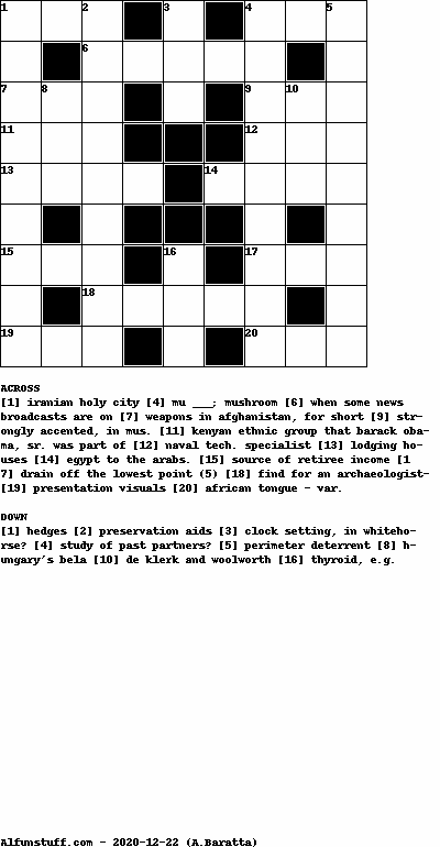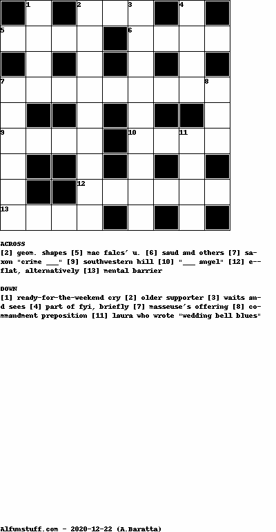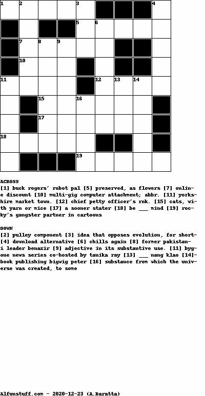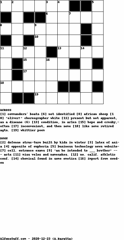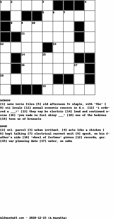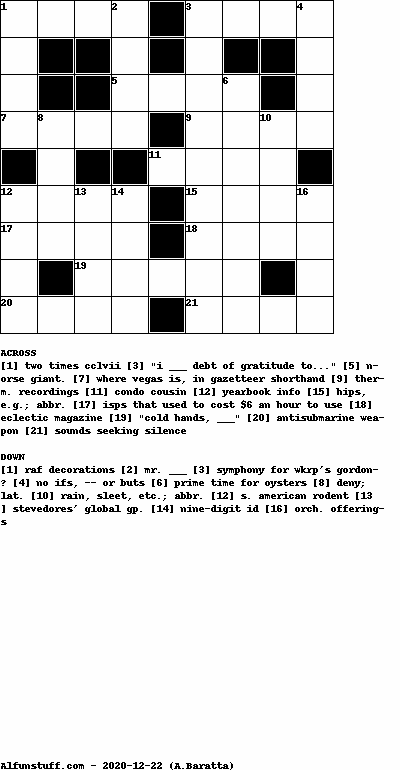 List of Crossword Puzzles with dimension 9x9