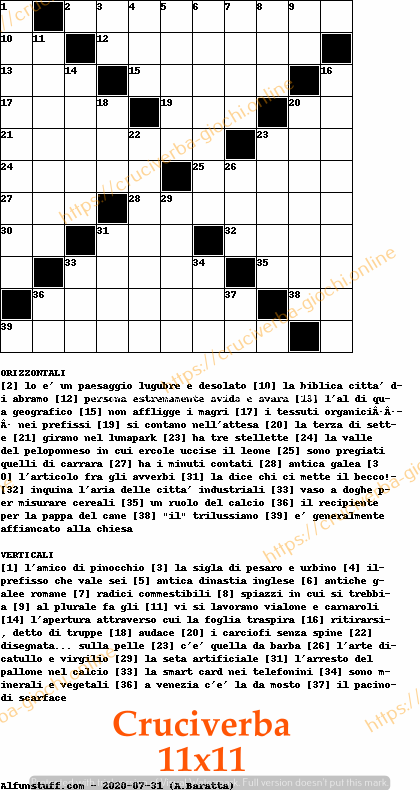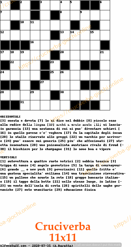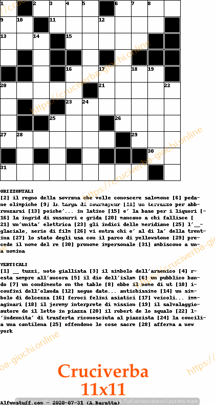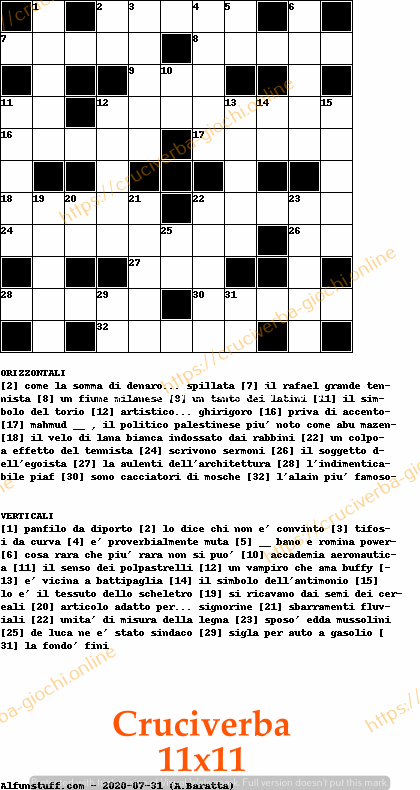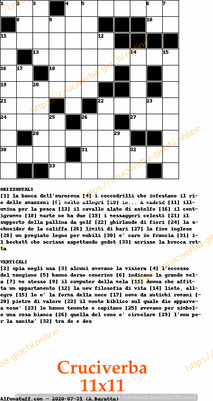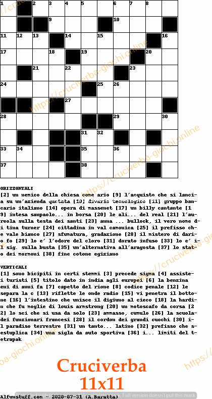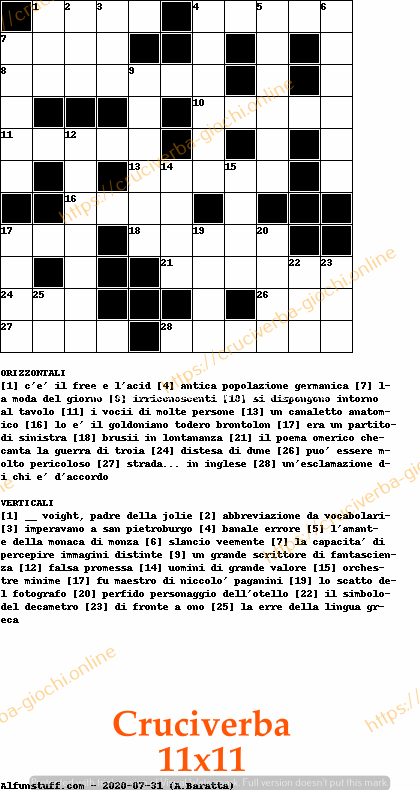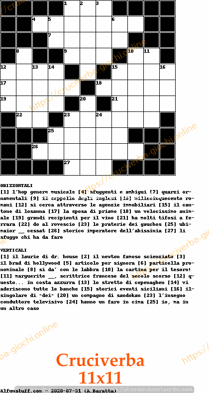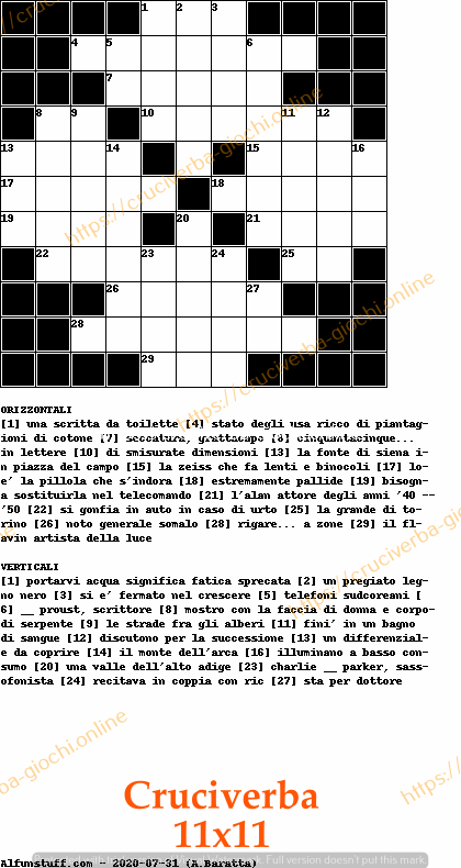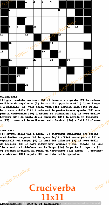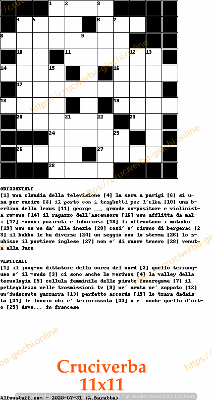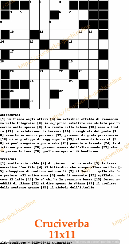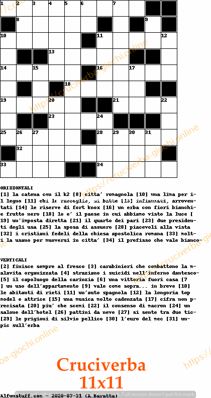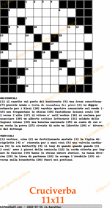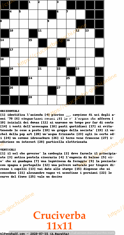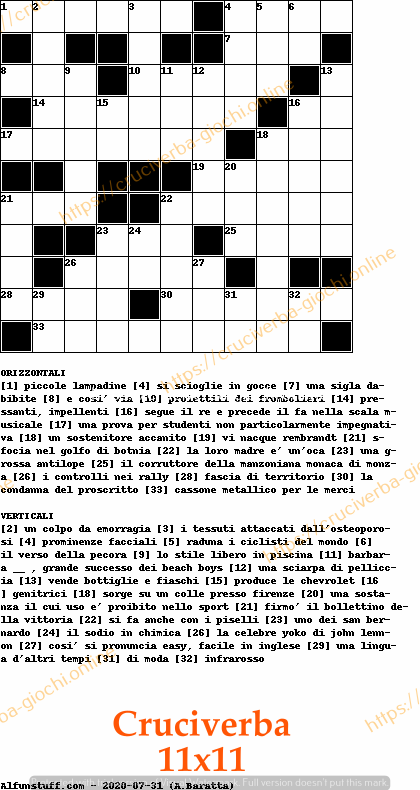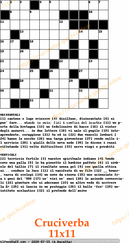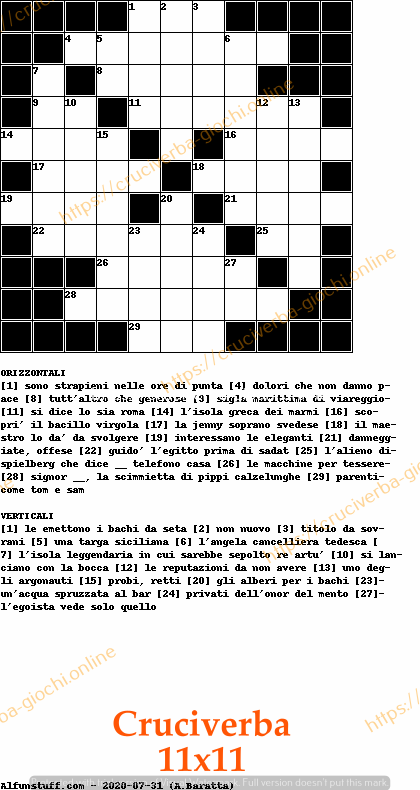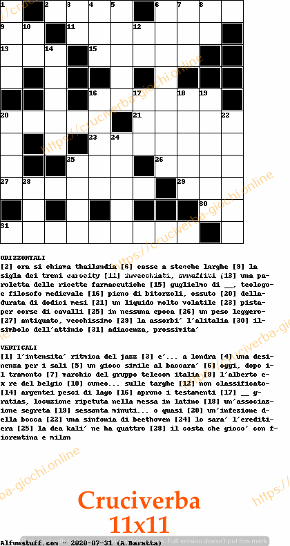 Di seguito troverete una lista di cento cruciverba. Le parole crociate possono essere completate online da qualsiasi dispositivo, oppure potete stampare gli schemi e completarli con carta e penna