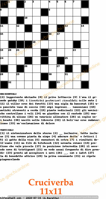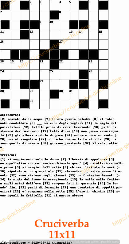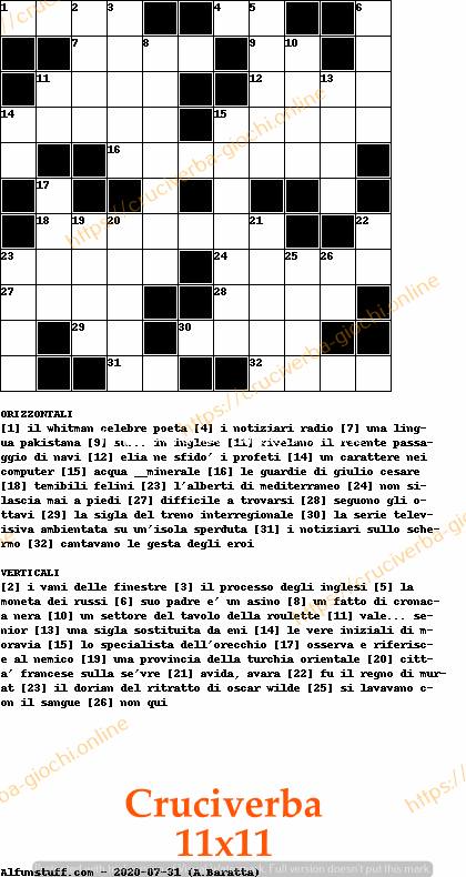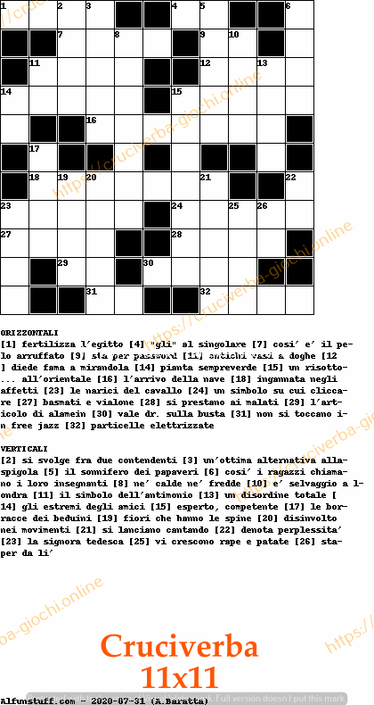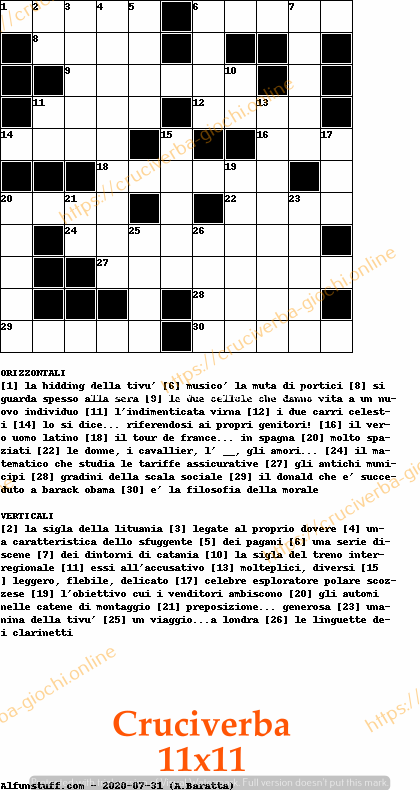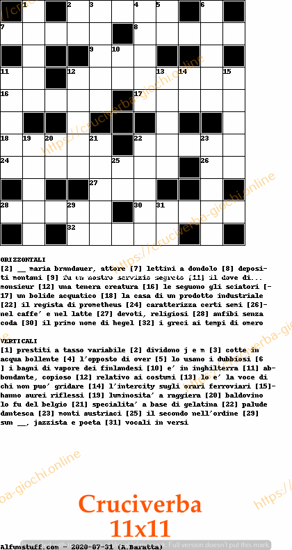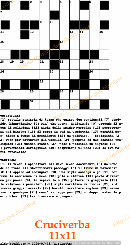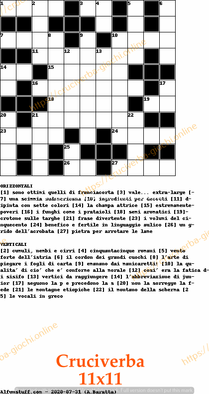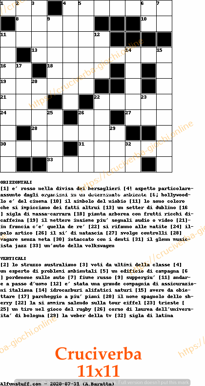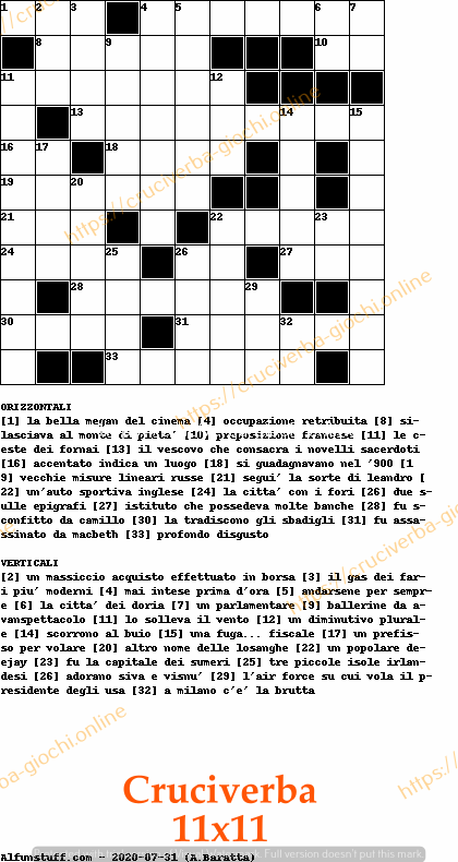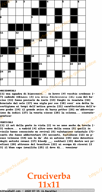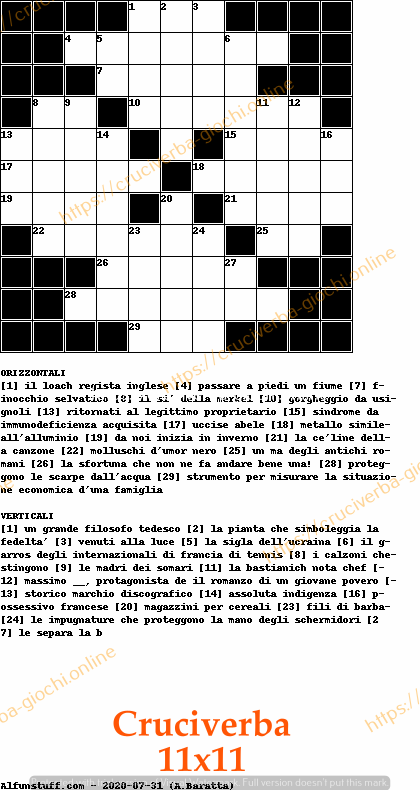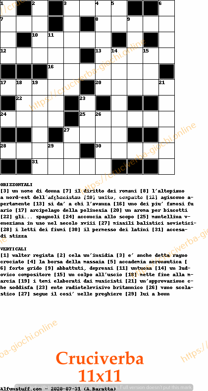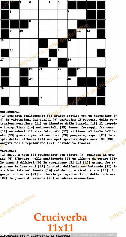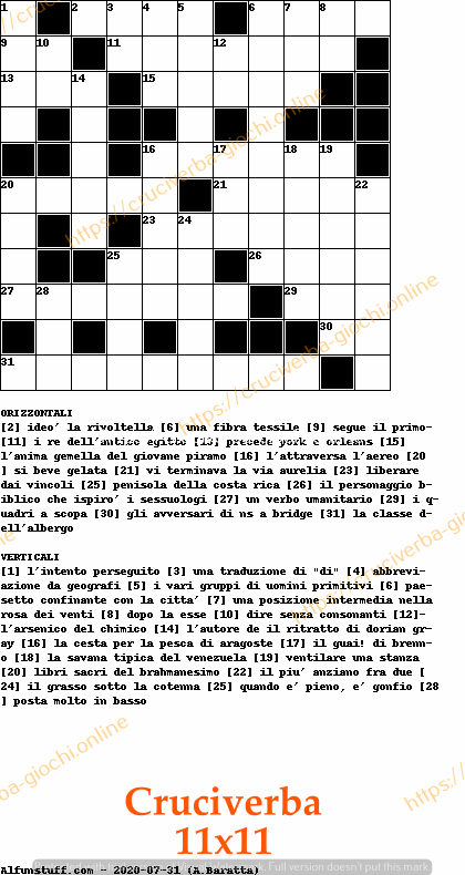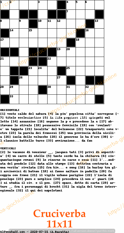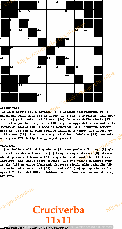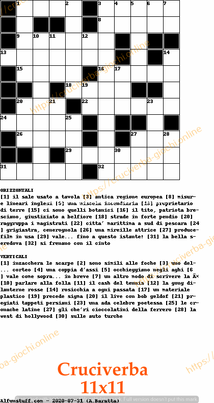 Di seguito troverete una lista di cento cruciverba. Le parole crociate possono essere completate online da qualsiasi dispositivo, oppure potete stampare gli schemi e completarli con carta e penna