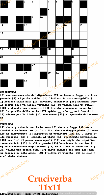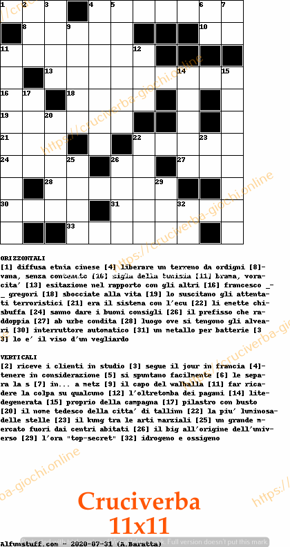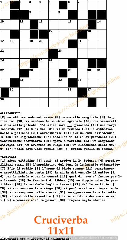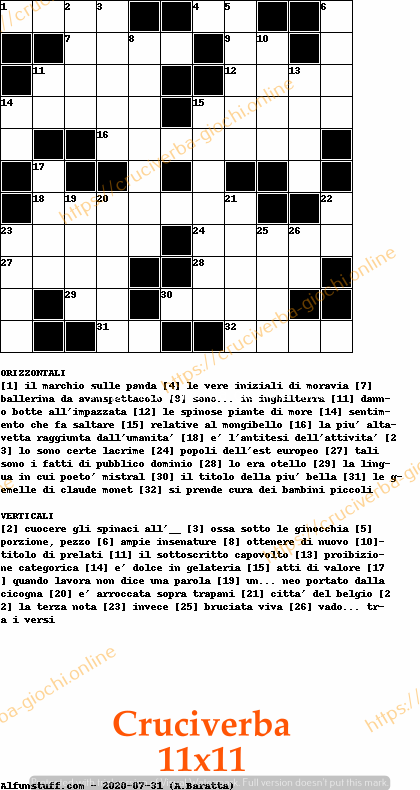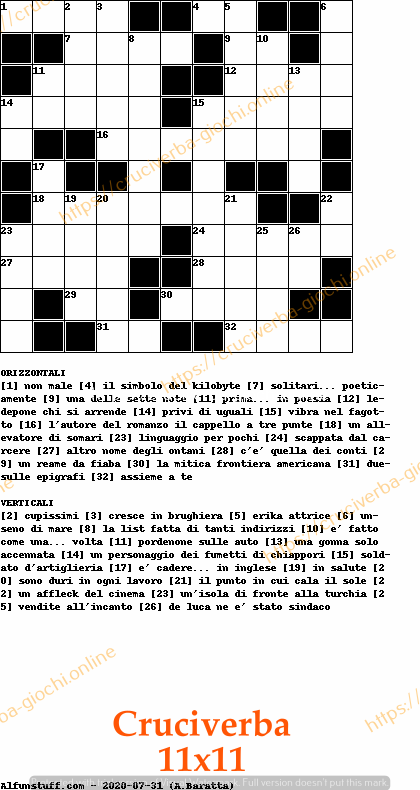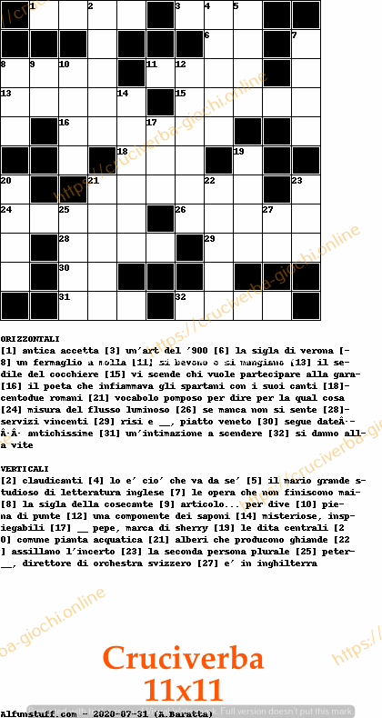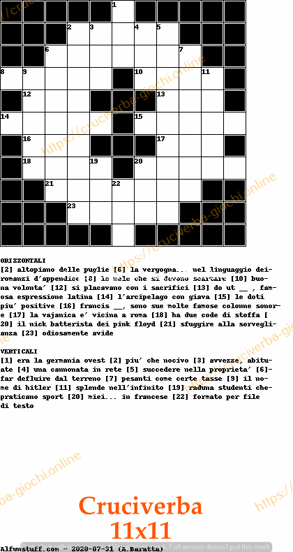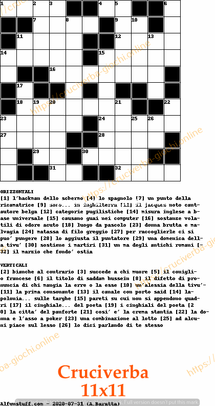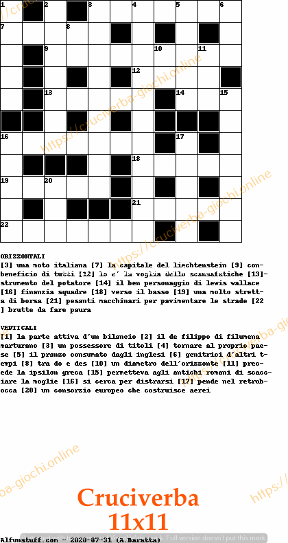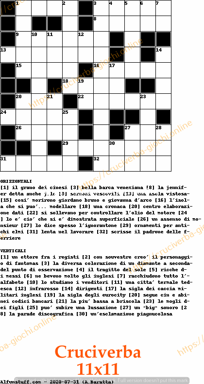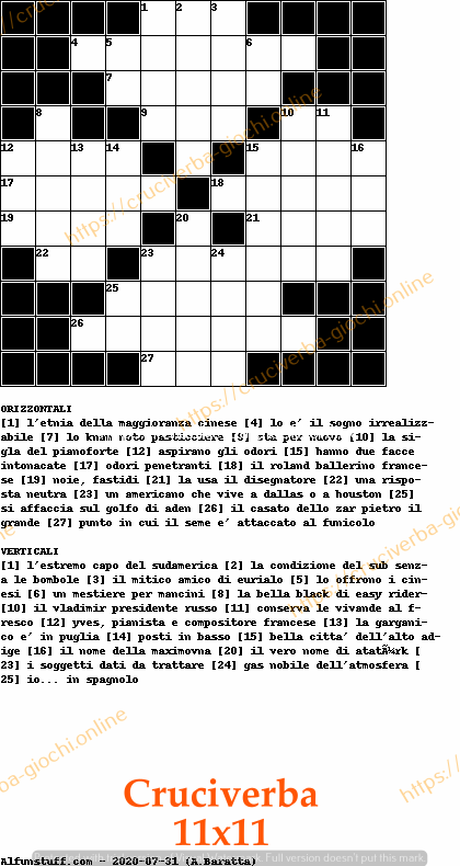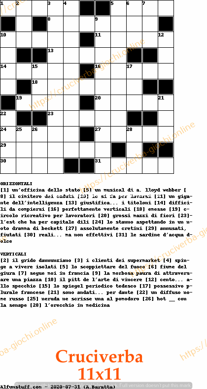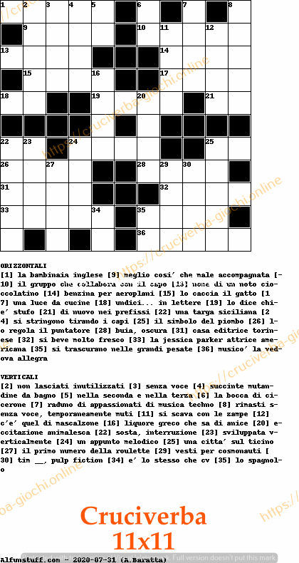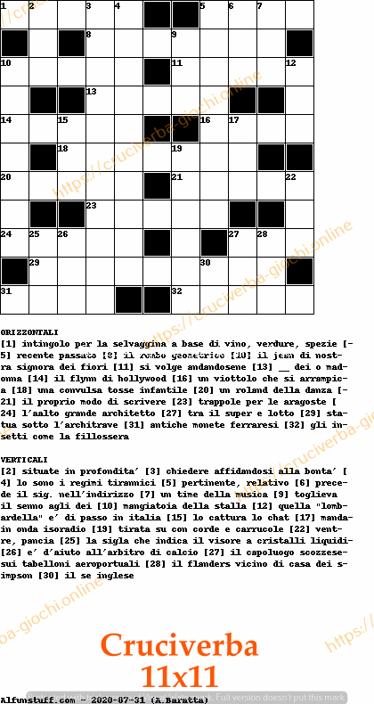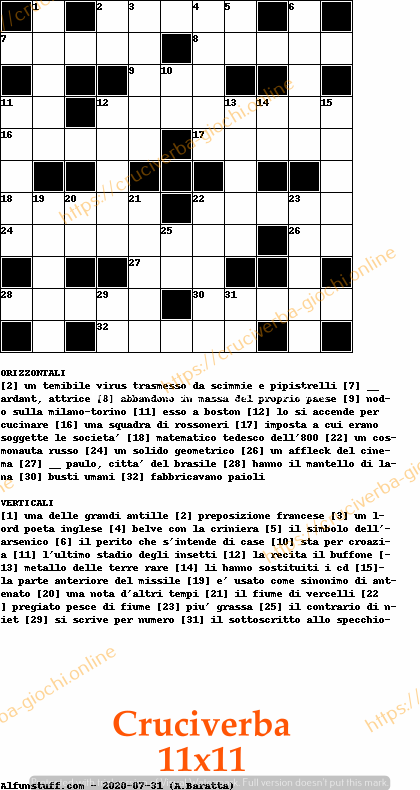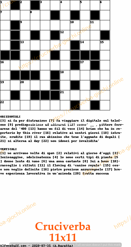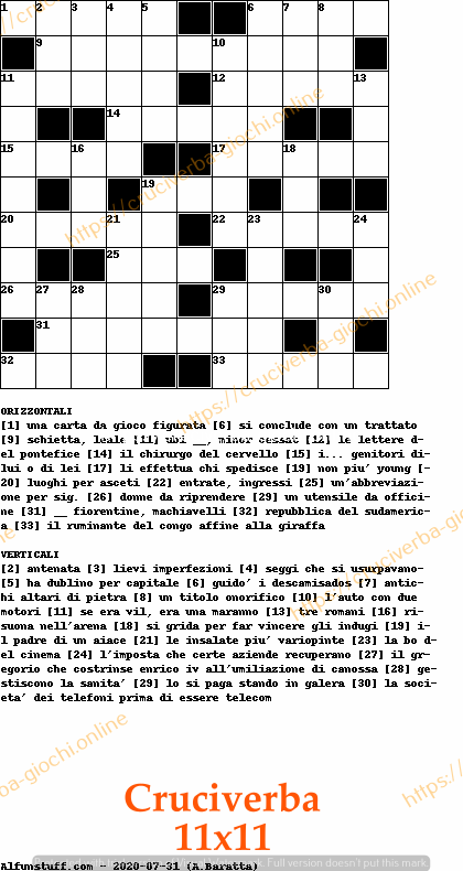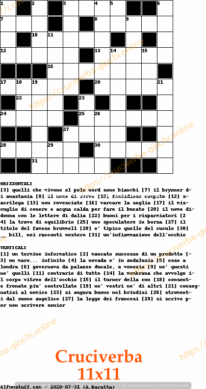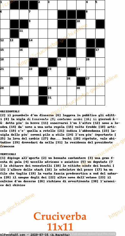 Di seguito troverete una lista di cento cruciverba. Le parole crociate possono essere completate online da qualsiasi dispositivo, oppure potete stampare gli schemi e completarli con carta e penna